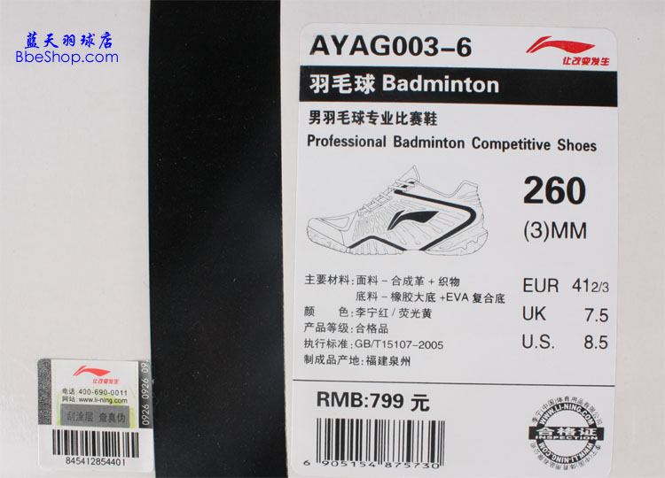 李寧(LI-NING)AYAG003-6 林丹款專業羽毛球鞋(李寧范,林丹范) | |||
