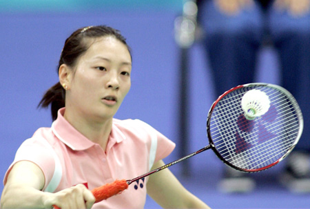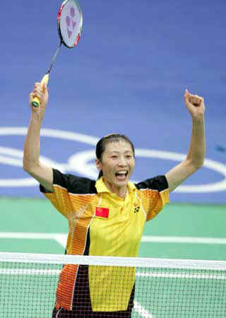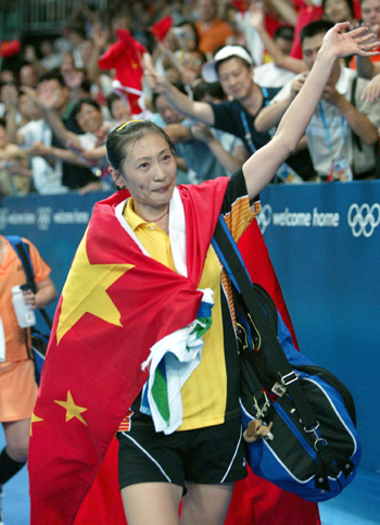 在北京時間8月19日晚7點進行的奧運羽毛球女單決賽中,我國老將張寧苦戰70分鐘以2:1戰勝荷蘭名將張海麗,獲得女單金牌,這也是我國在本屆奧運會上奪得的第12塊金牌。在女單銅牌爭奪賽中,我國選手周蜜以2:1戰勝隊友龔睿那。圖為張寧、張海麗、周蜜、龔睿那在賽場上。 |