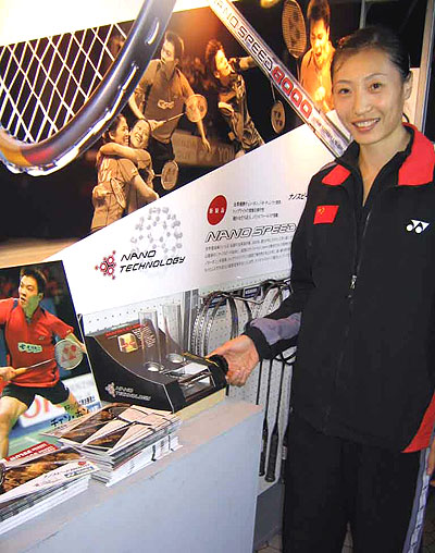 張寧賽后應邀參觀YONEX最新羽拍技術展示 |