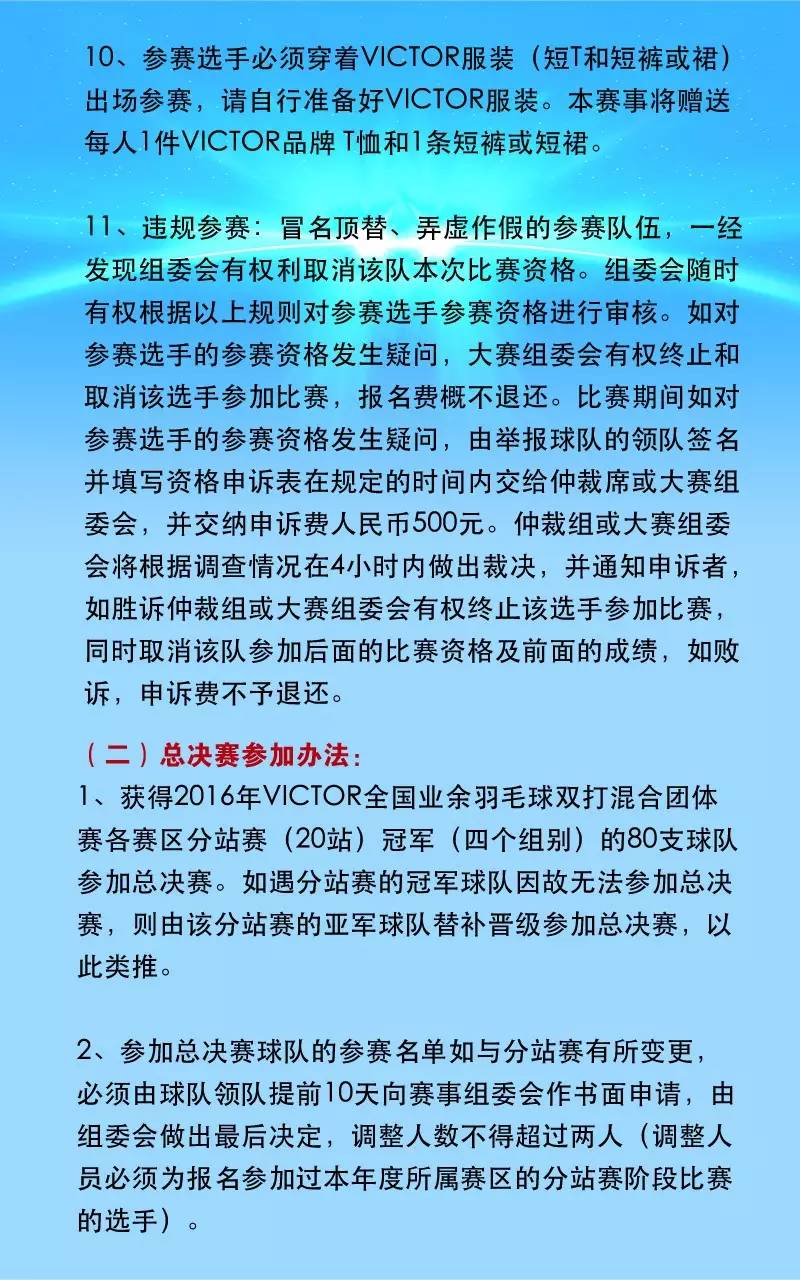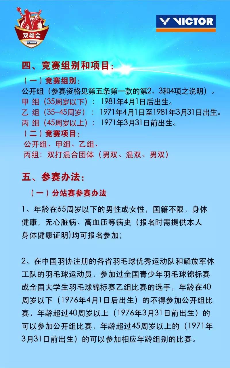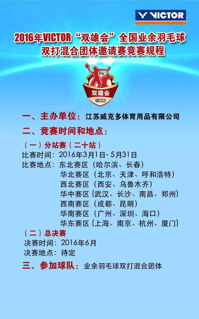 2016年VICTOR“雙雄會”全國業余羽毛球雙打團體賽北京分站規程 |