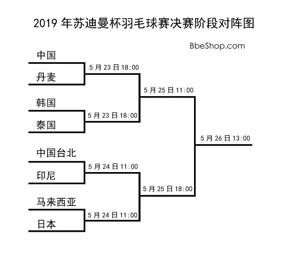 2019年蘇迪曼杯羽毛球賽半決賽成績: