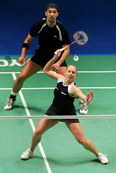 ※ CARLTON(卡爾頓)是歐洲品牌,英國頭號混雙組合、悉尼奧運會混雙亞軍羅伯特森/埃姆斯就是使用CARLTON羽毛球拍。羅伯特森/埃姆斯在賽場上使用CARLTON羽拍的圖片>>