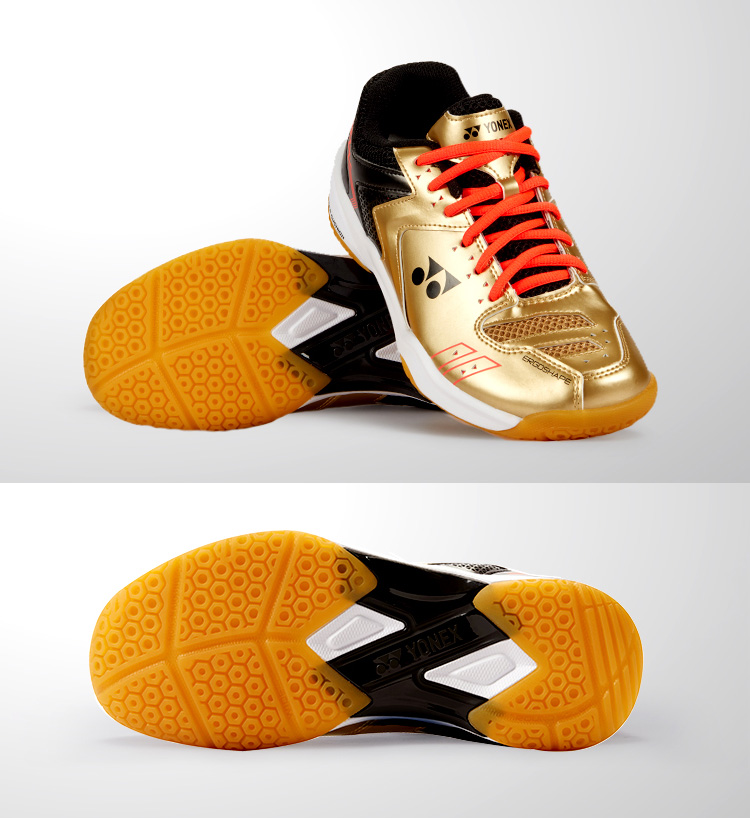 性能介紹 | 注:這款SHB210WCR金色鞋采用寬楦設(shè)計,特別適合腳寬的選手! 動力墊(Power Cushion):高密度復(fù)合結(jié)構(gòu)動力墊在受到?jīng)_擊力后能迅速恢復(fù)原狀,減震性能好,有助于球員在球場上實現(xiàn)更迅敏、輕快的移動。 TPU支撐片:鞋底中間位置安置了TPU支撐片,讓步伐變得更加穩(wěn)定,增強(qiáng)了鞋底的牢固度,減少鞋子的扭曲。 圓弧外底(Round Sole):YONEX圓弧外底給予運動時最大的能量轉(zhuǎn)移,為迅速流暢的步伐提供全方位的支撐。 六角膠粒外底(Hexagrip):六角膠粒外底較傳統(tǒng)材料減少20%重量和增加3%的抓地力,提供更敏捷穩(wěn)定的步伐。 |
