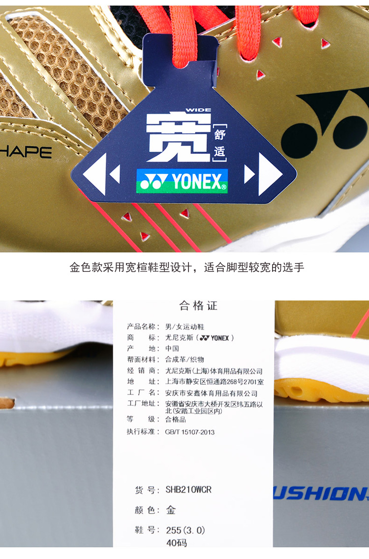 YONEX(尤尼克斯)SHB210WCR 金色寬楦羽毛球鞋 | |||