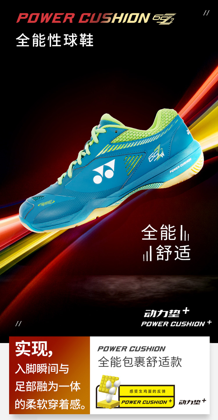 性能介紹 | 注:這款SHB65Z2W鞋采用寬楦設計,特別適合腳寬的選手! YONEX SHB65系列是目前最多球星選穿的專業羽毛球鞋,有多種顏色可選,穿SHB65系列鞋的球星有:世界頭號男單桃田賢斗、世界頭號男雙吉迪恩/蘇卡穆約、世界頭號女雙福島由紀/廣田彩花、印尼頭號男單金汀、丹麥頭號男單安賽龍、日本頭號女單山口茜、日本頭號混雙渡邊勇大/東野有紗、印度頭號男單斯里坎斯、印度前頭號女單內瓦爾、丹麥頭號男雙阿斯特/拉斯姆森、韓國名將李龍大/金基正等,數不勝數。 動力墊+(Power Cushion+):新型的動力墊上增加了一種有彈性的合成樹脂材料,比傳統動力墊的減震性提升了28%的,反彈力提升62%。 輕量動力碳板(Power Graphite Lite):置于鞋底中部的超輕動力碳板既增加了著地時的穩定性,又減輕了鞋的重量。 腳趾減壓鞋型(Toe Assist Shape):腳趾減壓鞋型設計能減小大腳趾所受壓力,同時也會提高腳中部和腳后跟的穩定舒適度,盡可能地減少球員在快速移動中能量的損耗。 鞋側防護殼(Lateral Shell):位于鞋面外側,防止腳底邊緣的滑動,減少能量損失,提供順暢的腳步轉換成進攻的步伐。 自適應貼腳鞋墊(Syncro-Fit Insole):提供腳跟更多的支撐并減少足部與球鞋間的空隙,自適應貼腳鞋墊確保球鞋有最大的抓地力并提供較好的舒適感。 圓弧外底(Round Sole):YONEX圓弧外底給予運動時最大的能量轉移,為迅速流暢的步伐提供全方位的支撐。 六角膠粒外底(Hexagrip):六角膠粒外底較傳統材料減少20%重量和增加3%的抓地力,提供更敏捷穩定的步伐。 雙層拉舍爾透氣網面(Double Russel Mesh):超輕、耐用的拉舍爾細密纖維網眼結構,透氣性能比普通網面高8倍,能最大限度釋放鞋內的濕氣。 |