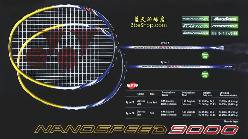 YONEX NANOSPEED 9000 TYPE S 羽毛球拍 | |||