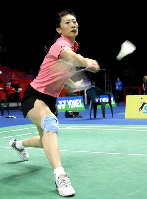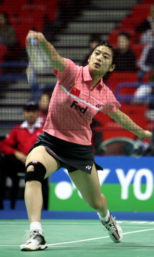 中國選手張寧在2007全英羽毛球公開賽女單決賽中 |